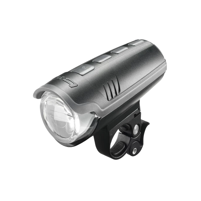Ixon Pure, der LED-Scheinwerfer mit IQ2-Technologie bietet ein gutes Lichtfeld auf der Fahrbahn, mit Nahfeld-Ausleuchtung. Eine umlaufende Gummikante dient als Stossschutz. Gegen stoerende Blendung des Fahrers beim Vorbeugen und im Wiegetritt ist die Kante ueber dem Klarglasbereich nach vorne ausgeformt. . Aufladbar per Micro-USB-Buchse, Netzteil und Kabel beiliegend. Wiegt inklusive Akku und Halterung nur 143 g.