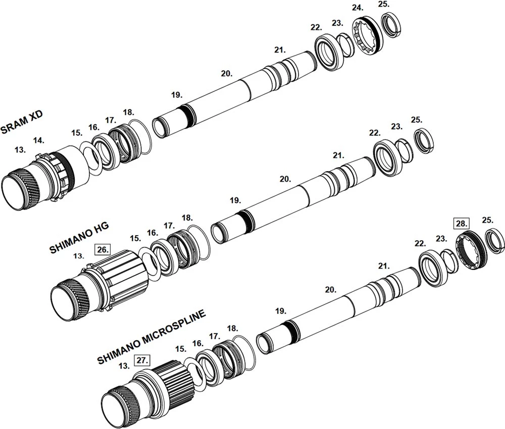 - Freilaufkoerper: Shimano HG11 11-fach, Freilauf kompatibel mit Shimano Road 9-11-fach, Shimano MTB 8-11-fach, Sram PG 8-11-fach Kassetten