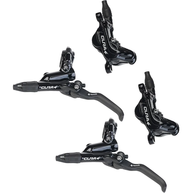 Im Lieferumfang: Formula Cura 4 Bremsgriffe, Formula Cura 4 Bremszangen, 175 cm Leitungen und alle benoetigten Schrauben zur Mopntage und Leitungskuerzen. Die Formula Cura Bremsen liefern wir komplett vormontiert, entlueftet und natuerlich mit voller Herstellergarantie.
