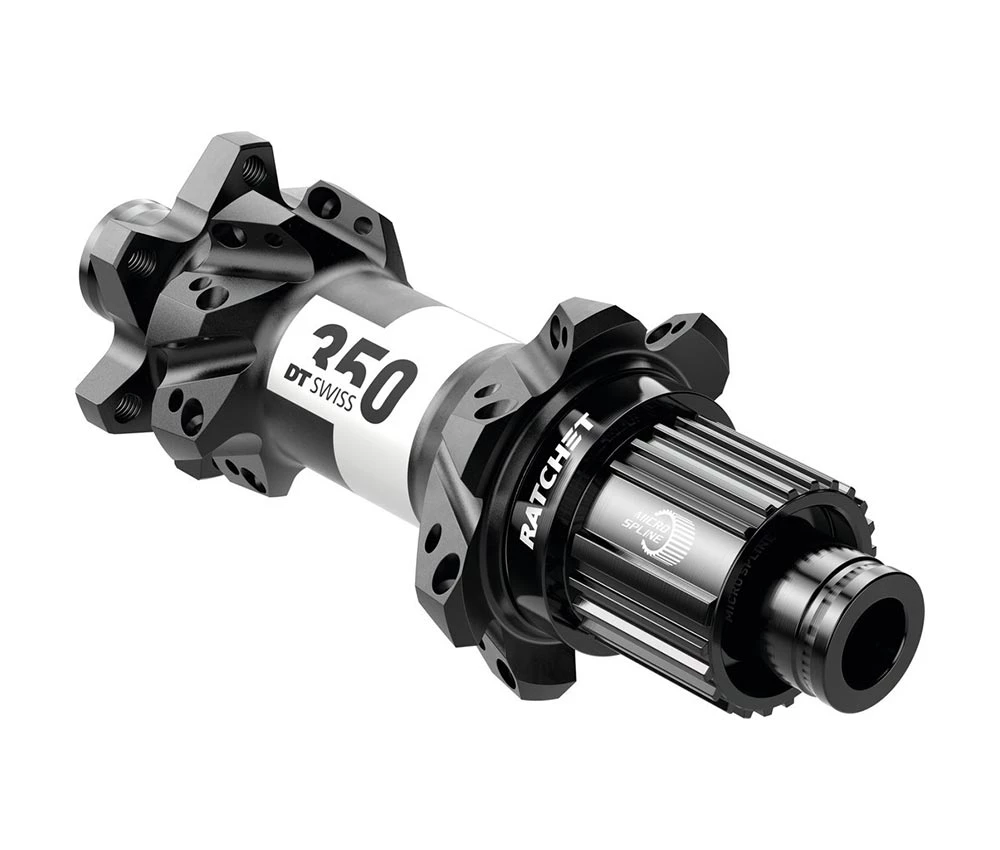 Das bewaehrte DT Swiss Star Ratchet System mit dem Zahnscheibenfreilaufkoerper ermoeglicht den einfachen Umbau auf verschiedene Achs- oder Rotorstandards. Die DT Swiss Star Ratchet Star Hinterradnaben lassen sich einfach auf die gaengigen Aufnahmen, 10x135mm Schnellspanner, 12×142 mm X12 Steckachsenaufname, Shimano HG10, HG11, Micro Spline, Sram XD und XDR und Campagnolo ED und N3W umruesten.