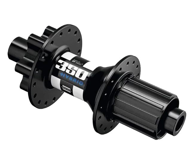 Mit den 350 Hybrid Naben bietet DT Swiss preiswerte und technisch hochwertige Naben fuer den e Bike Einsatz an mit verstaerkten Achsen, Lagern, Speichenloechern und Freilaufkoerper an. Die 350er Nabenlinie auf maximale Haltbarkeit ausgelegt. Ausgestattet mit hochwertigen Dichtungen und Lagern, die Wahl wenn Sie Naben fuer langlebige und wartungsarme Laufraeder suchen. diese Naben machen nicht nur an we Bikes sind sondern sind auch sehr gut fuer hochbelastete Dirt, DH und Enduro Bikes geeignet