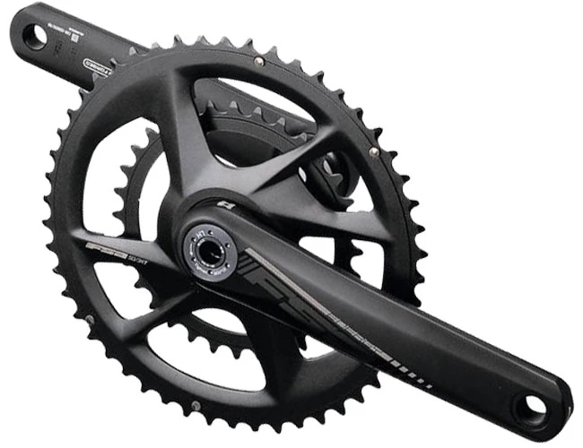 Durch Verwendung von hohlen Kurbelarmen aus Aluminium sowie einer BB386EVO-Kurbelwelle aus geschmiedetem 7050er Aluminium konnte das Gewicht niedrig gehalten werden. Das aeussere Direct Mount-Kettenblatt wird fuer maximale Steifigkeit zu 100 Prozent aus 7075-T6 Aluminium CNC-gefraest. Auf der Innenseite des Blattes befindet sich eine Vierarm-Aufnahme, 90 mm Lochkreis, fuer das innere ebenfalls aus 7075er Aluminium hergestellte Kettenblatt. Das aeussere Blatt ist mittels Schalthilfen fuer Shimano/SRAM 10 und 11 fach Schaltungen optimiert.