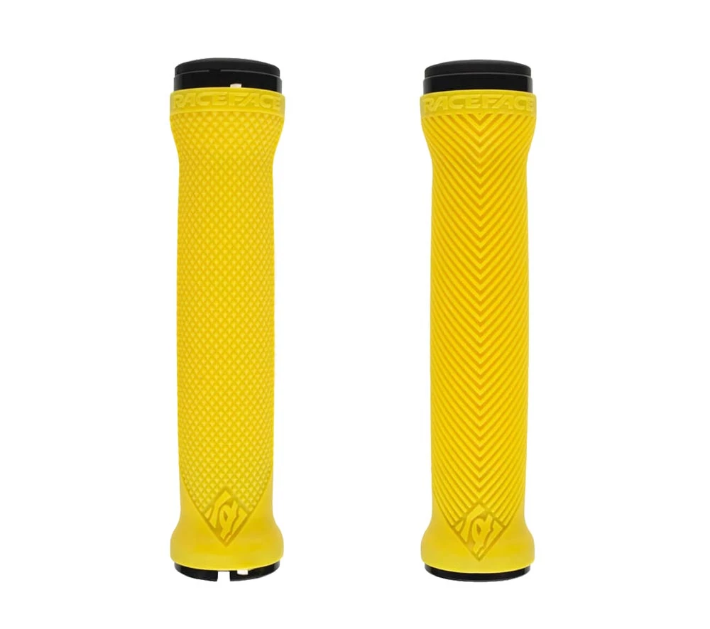 Der Race Face Love Handle Lenkergriff ist ein sehr duenner, Double Lock-On Griff aus haltbarem und sehr griffigem Silikongemisch, welches fuer Langlebigkeit und besten Grip bei jedem Wetter sorgt. Der Love Handle sieht nicht nur gut aus, im Bereich der Handflaechen sind die Griffe mit kleinen Rillen ausgestattet, die zur besseren Luftzirkulation beitragen und Feuchtigkeit schneller abfuehren. Die Diamanten Struktur bietet im Bereich der Finger beste Griffigkeit und tonnenweise Kontrolle ueber den Lenker.