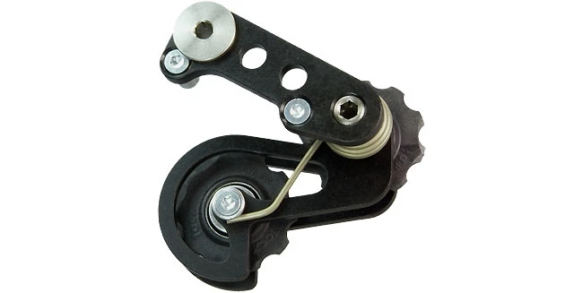 Bei Rahmen in der die Rohloff Speedhub Naben nicht horizontal verschoben werden kann, wird ein Kettenspanner benoetigt um die Kette mit der noetigen Spannung zu versehen.