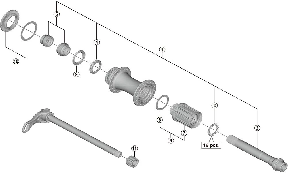 Shimano XTR FH-M9010 / FH-M9010-B Disc Hinterradnabe Ersatzteile: