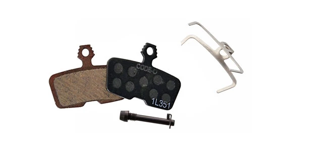 Die Organic Belagsmischung der Sram / Avid Code Discbelaege ist weicher und stellt hoehere Bremskraeft zur Verfuegung, verschleissen aber schneller als die haerteren Metall Belaege.