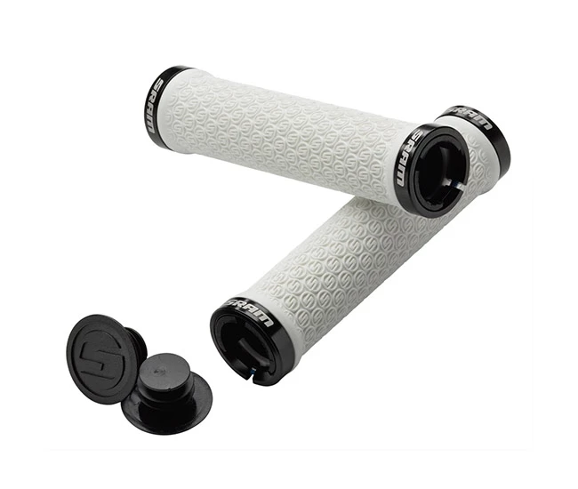 Fest am Lenker verschraubt mit profilierter Gummilage. Die Sram Locking Grips Griffgummis fuer den Enduro und Cross Country Einsatz.