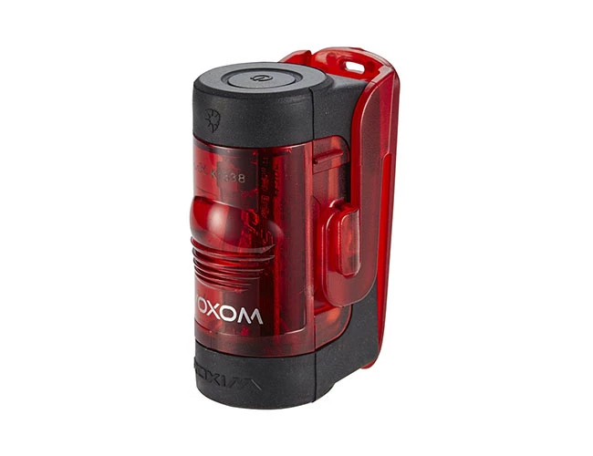 StVZO-zertifiziertes Ruecklicht mit werkzeugloser Befestigung per Gummi-Strap oder Clip-Befestigung am Rucksack oder der Sattelstuetze.