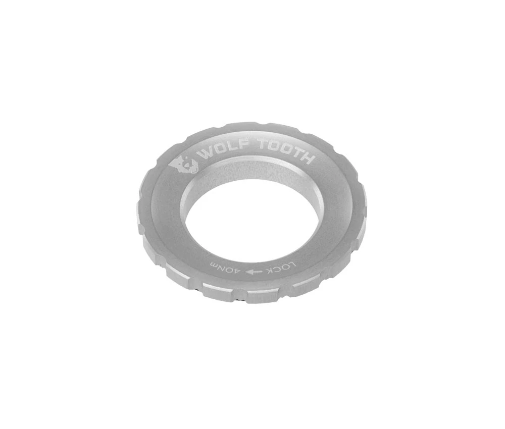 Der Wolf Tooth Verschlussring mit 44 mm Standard-Aussendurchmesser zur Befestigung von Center Lock Bremsscheiben an Naben mit 12, 15, 20 mm Steckachsen oder 9,10 mm Schnellspanner-Aufnahme. Durch die 4 mm Hoehe passt der Verschlussring perfekt zwischen alle Road, Gravel und MTB-Rahmen und -Gabeln.