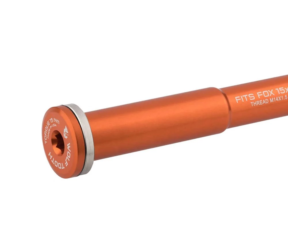 Die Wolf Tooth Steckachse fuer Fox Gabeln – sehr leicht aus den besten Materialien und einfach montiert.
