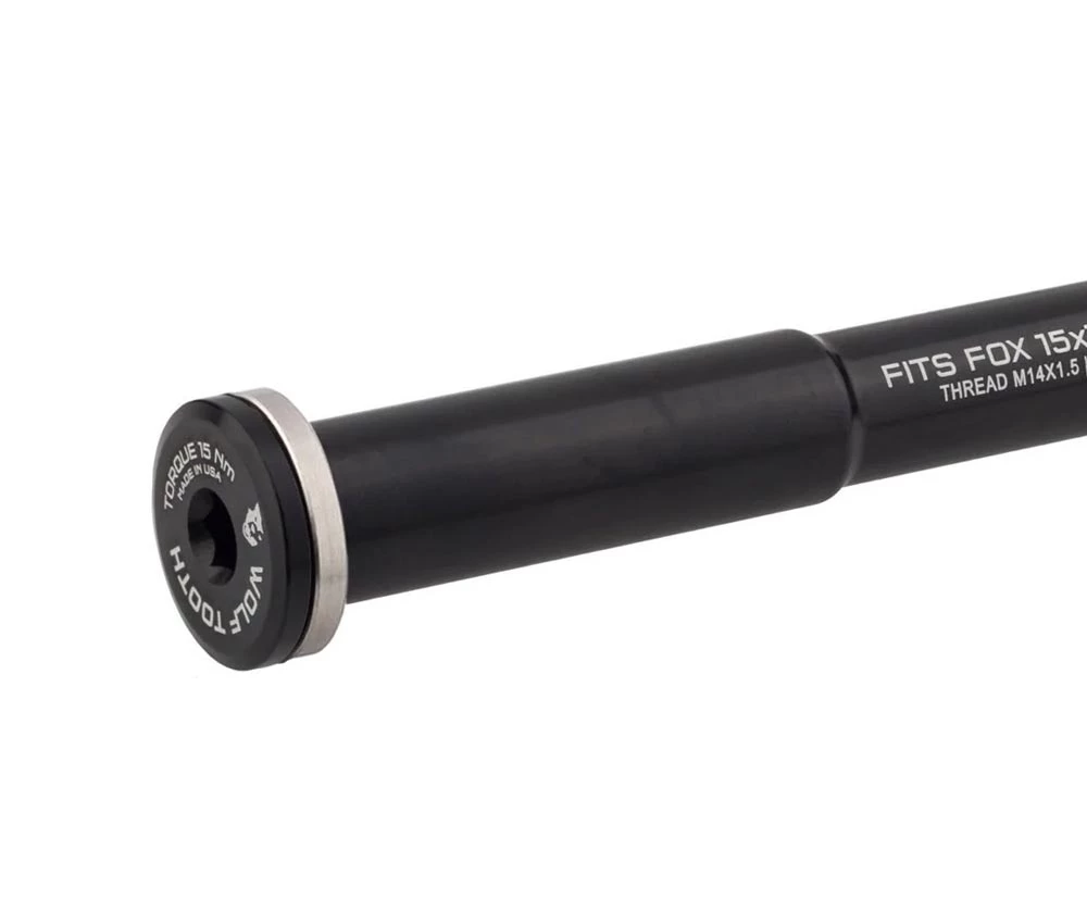 Die Wolf Tooth Steckachse fuer Fox Gabeln – sehr leicht aus den besten Materialien und einfach montiert.